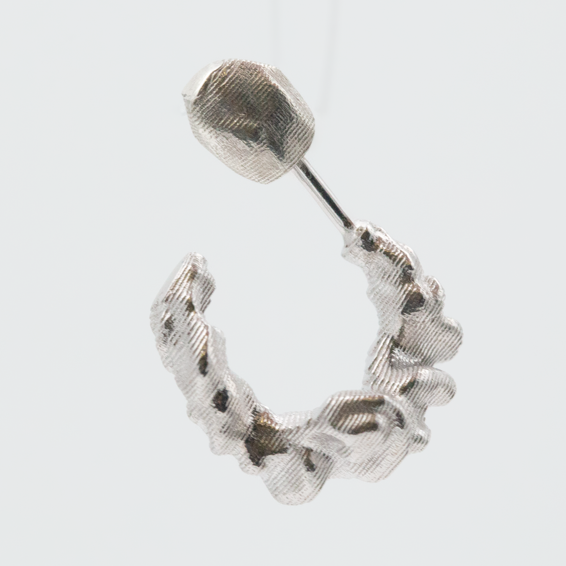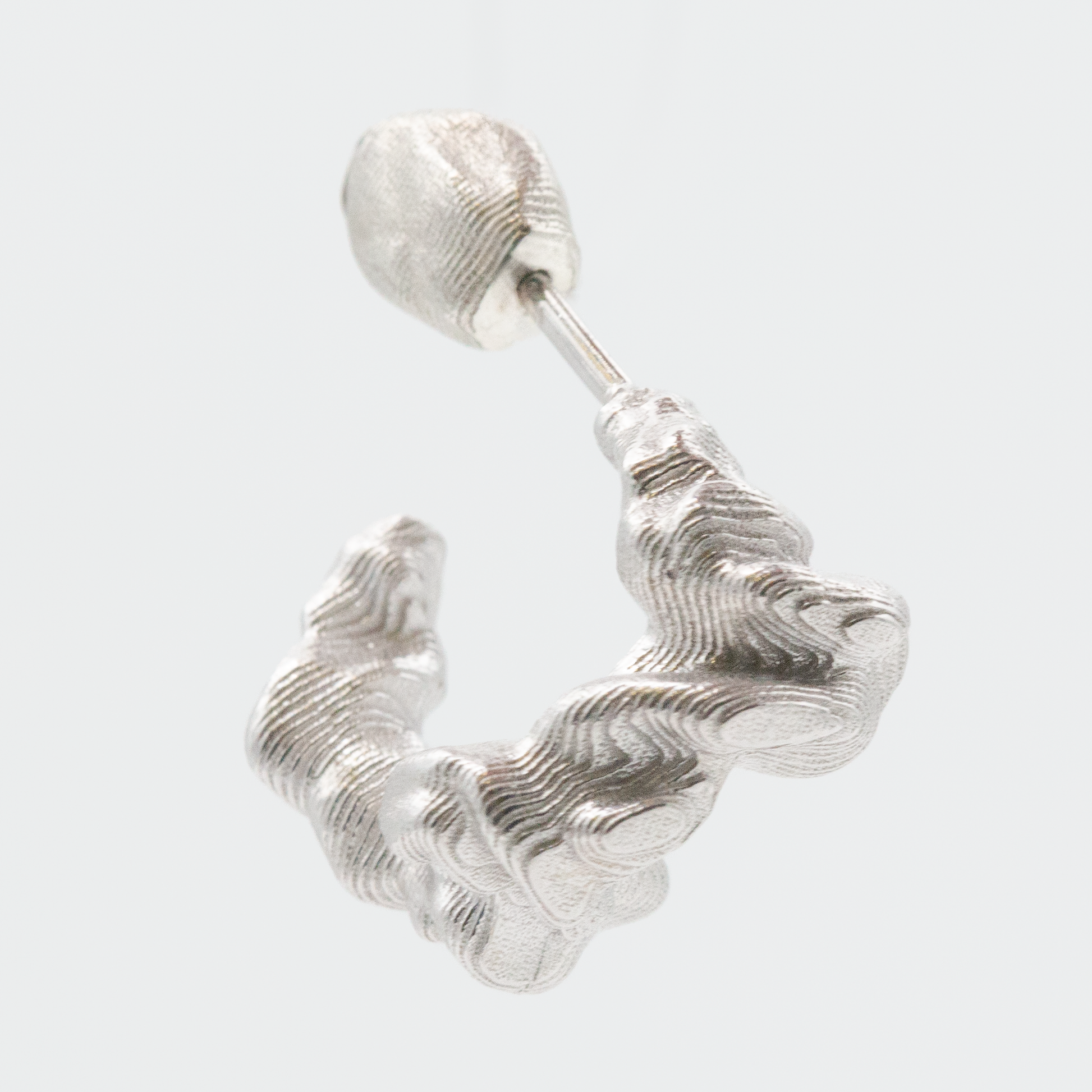 To keep your earring looking its best, store it separately from other jewelry and avoid contact with water, perfume, or cosmetics. Store your jewelry in a dry place. Clean gently with a soft polishing cloth. Over time, a natural patina may appear, adding depth and individuality to the surface.